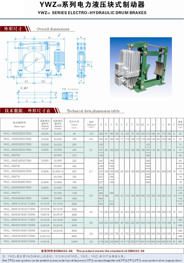 YWZ4電力液壓制動器型號:YWZ4-100/E23,YWZ4-150/E23,YWZ4-200/E23,YWZ4-200/E30,YWZ4-300/E50,YWZ4-300/E80,YWZ4-400/E80,YWZ4-400/E121,YWZ4-500/E121,YWZ4-500/E201,YWZ4-600/E201,YWZ4-600/E301,YWZ4-700/E301,YWZ4-800/E301