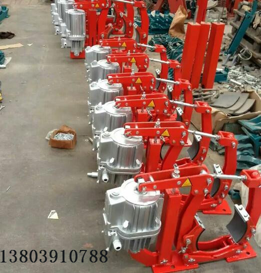 YWZ9電力液壓塊式制動(dòng)器主要有推動(dòng)器、底座、制動(dòng)臂、制動(dòng)彈簧、制動(dòng)瓦塊、彈簧拉桿、杠桿、退距自動(dòng)均等裝置、潤滑裝置等部分組成。