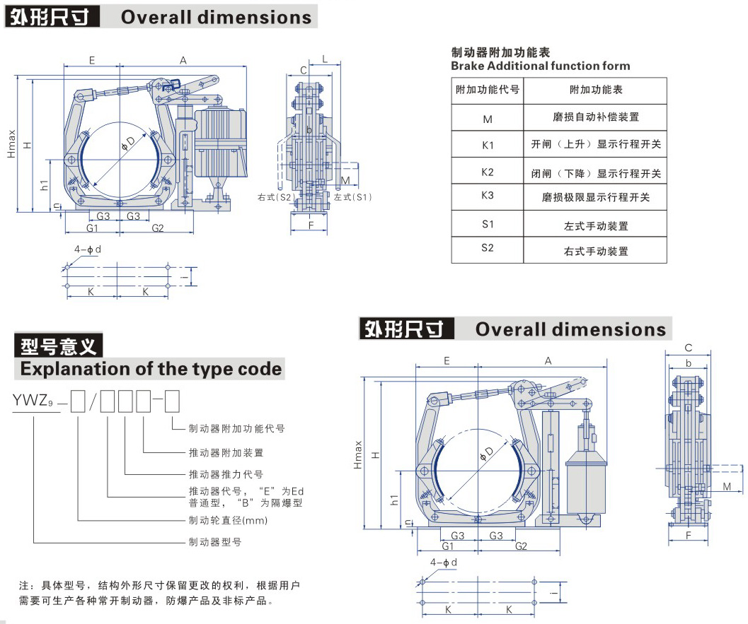 d、推動器的安裝尺寸H1是否小于表五所列之H1之***小尺寸,如超出要求,須進行調(diào)整,否則失去制動作用。